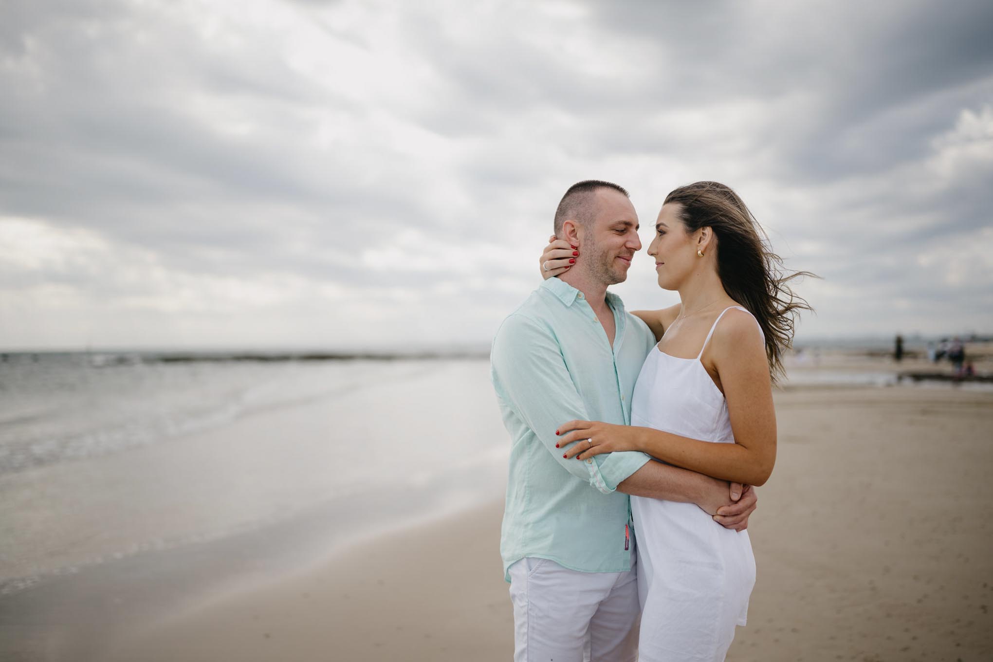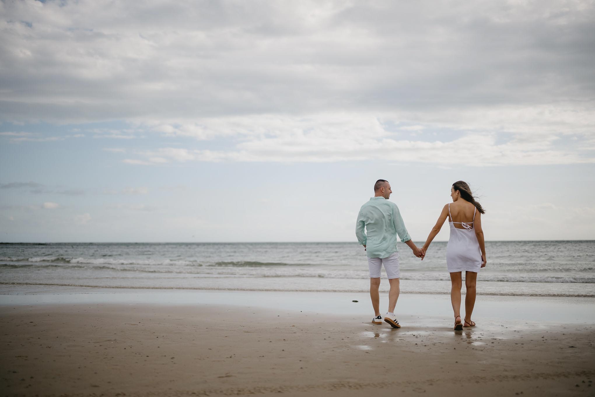 Neutral and muted tones always photograph beautifully at the beach. Think colours that feel light, airy and coastal rather than bold or high-contrast.